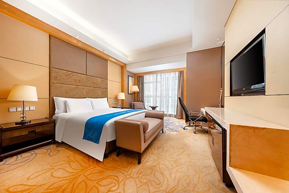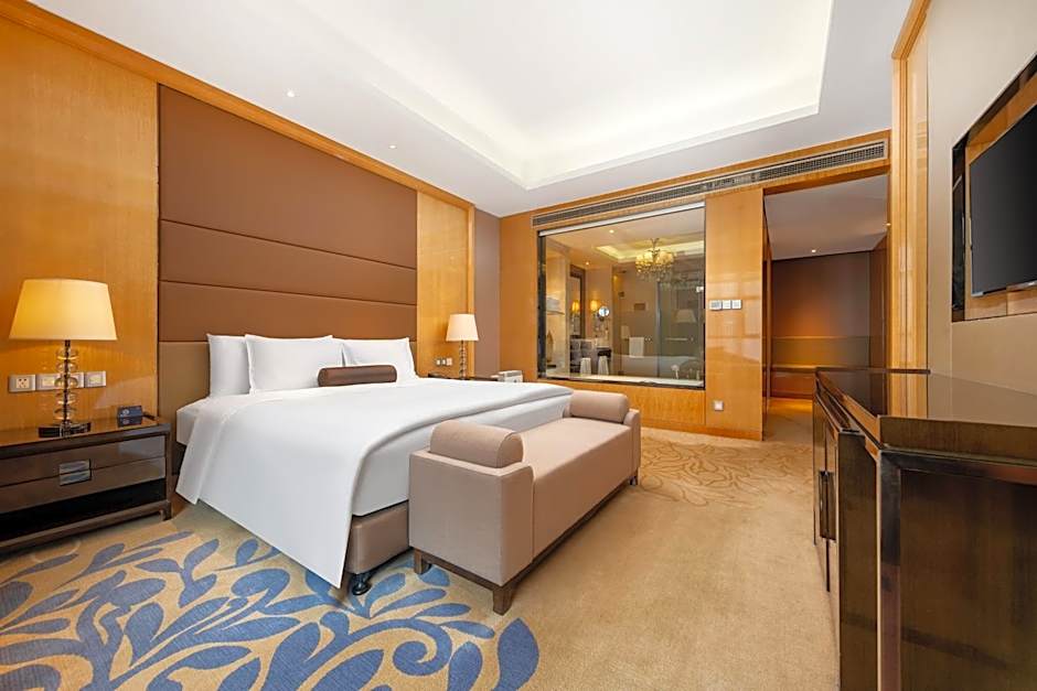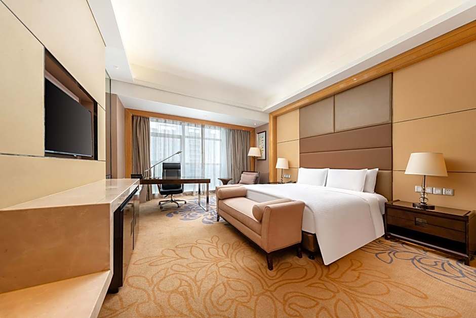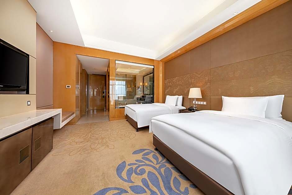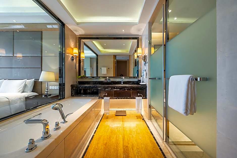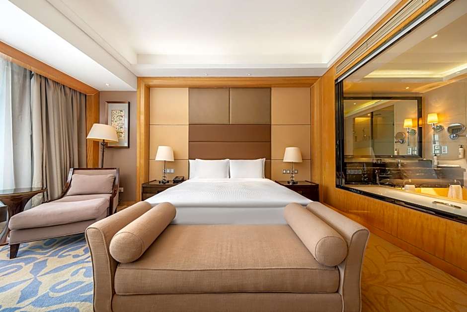 Spacious rooms feature a stunning bathroom with a deep bathtub and a separate rainshower, a 42-inch flat-screen TV and a well-designed work area with ample power and data ports. An iPod docking station is provided as well. Guests can enjoy access to the Executive Lounge on the 21st floor with stunning city views: